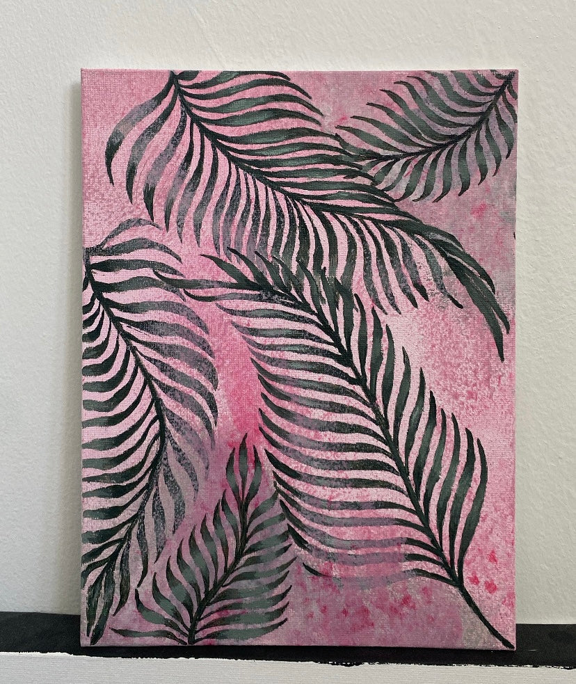 Mini Palm Leaves in Pink and Green Art